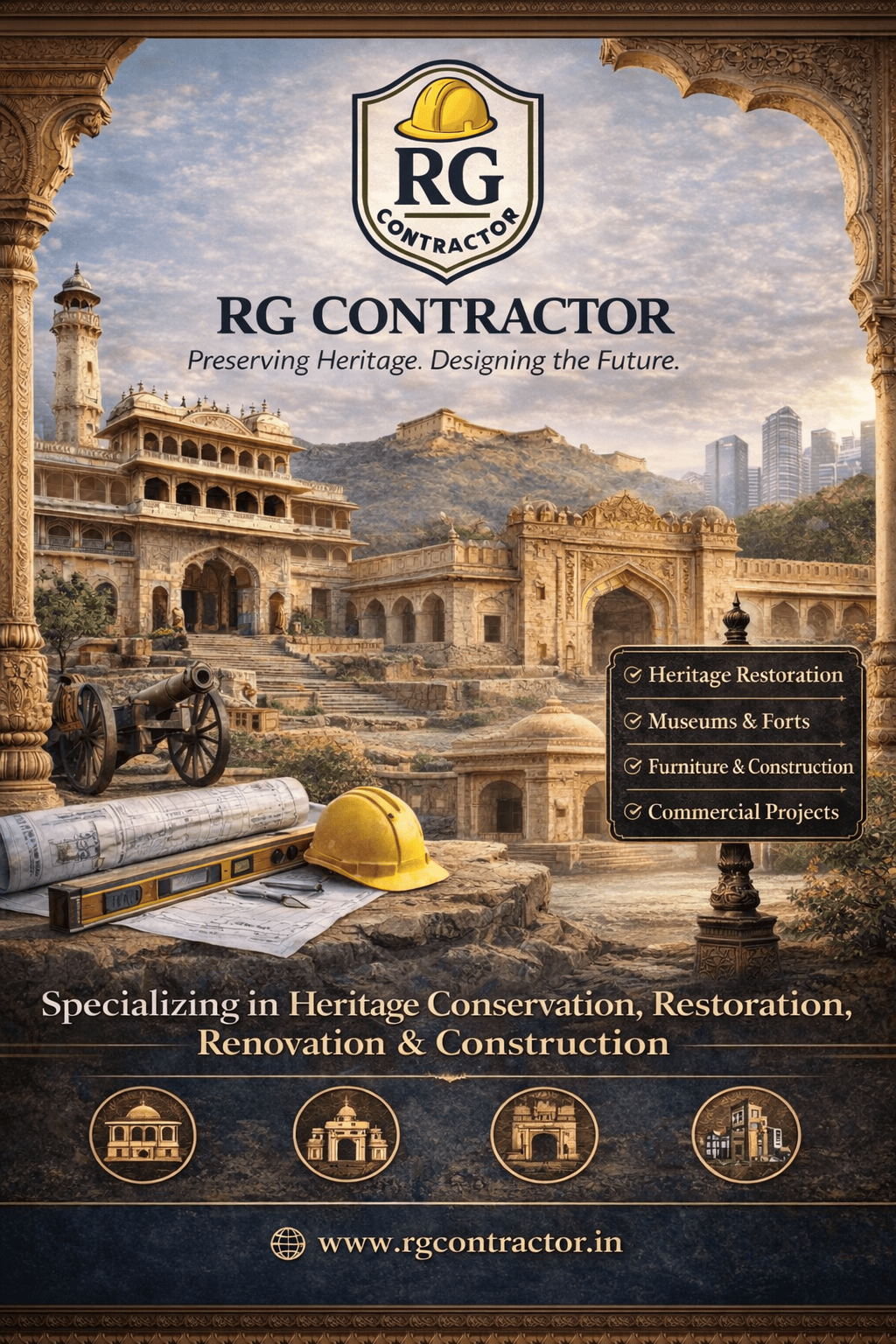 RG CONTRACTOR is a trusted name in heritage conservation, museum works, and construction services. With over 35 years of experience, we have successfully executed government, institutional, and private projects with a strong focus on quality, accuracy, and durability.